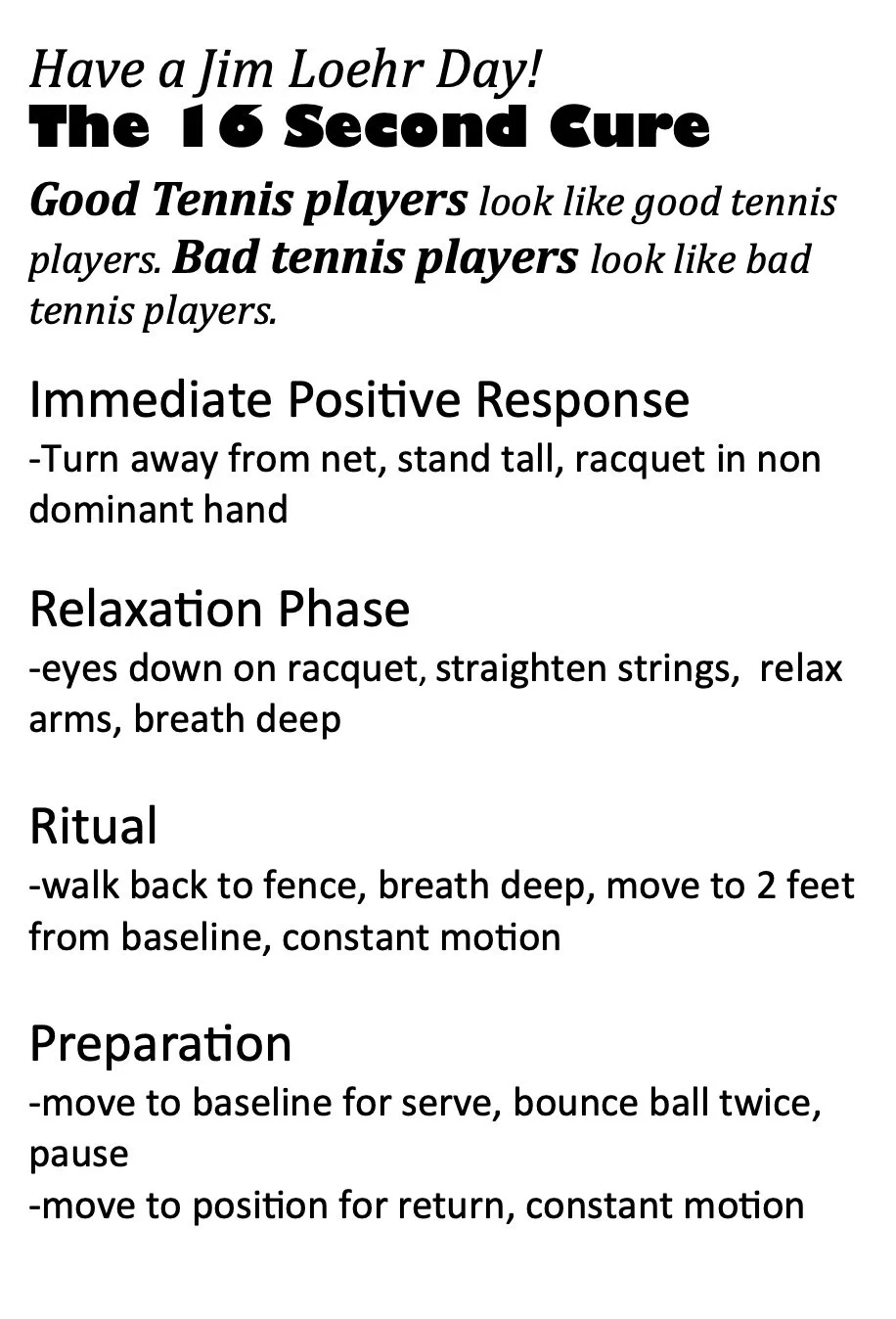 Jim Loehr was one of the first sport psychologist in the country and his teachings still hold true today.